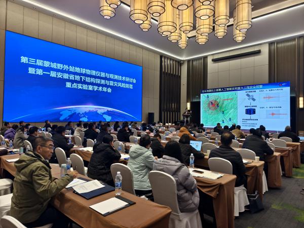 12月12日至14日,第三届蒙城野外站地球物理仪器与观测技术研讨会暨第一届安徽省地下结构探测与震灾风险防范重点实验室学术年会在合肥举办。安徽省地震局党组成员、副局长凌学书,中国科学技术大学研究生院常务副院长、蒙城野外站常务副站长姚华建出席开幕式并致辞。来自中国科学院相关科研院所、中国地震局直属研究所、省级地震局、高新技术企业以及中国科学技术大学、中国矿业大学等高校的近百名专家学者参加会议。