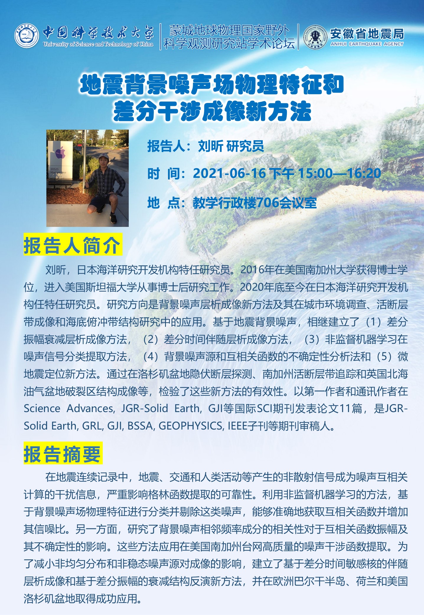 报告题目:地震背景噪声场物理特征和差分干涉成像新方法